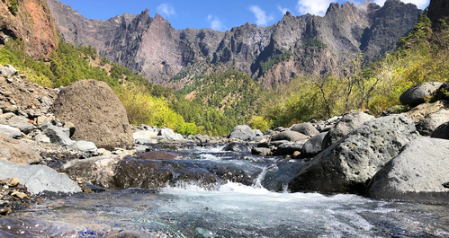 Das Herz der Insel bildet der Nationalpark Caldera de Taburiente, ein geschichtsträchtiger Ort, der bei den Ureinwohnern Acero genannt wurde. Mit einem ganzjährig fließenden Fluss, plätschernden Wasserfällen, Kissenlava und Steilwänden erwarten Sie unzählige Eindrücke. Vom Startpunkt in Los Brecitos haben Sie ein umwerfendes Panorama auf den Kessel. Abwärts durch duftenden Pinienwald über den Reventón-Pass mit Blick auf die Schlucht Limonero.